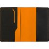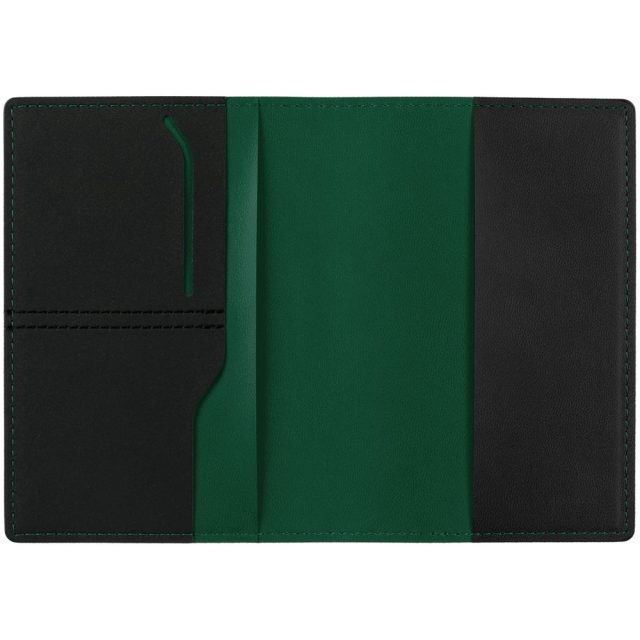 Имеет основное отделение для паспорта и 2 отделения для визиток или кредитных карт.