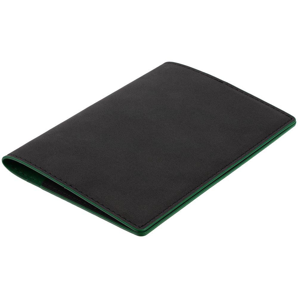 Обложка выполнена из материала Soft Touch Pearl, черный АА и срез обложки окрашен в цвет внутреннего материала Latte, зеленый FF.