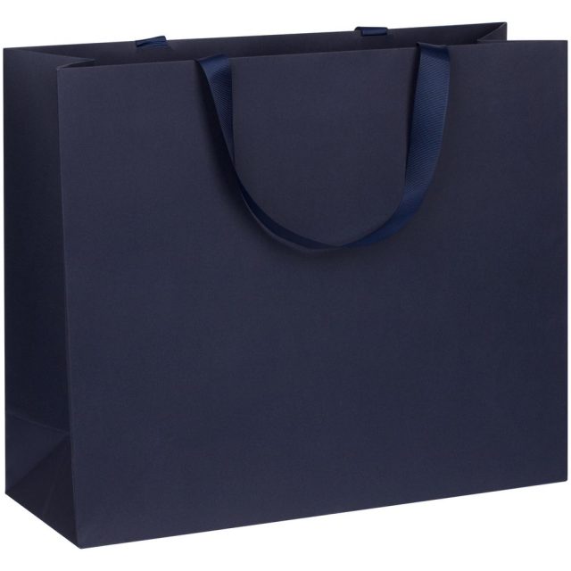 Пакет на лентах из бумаги Midnight Blue плотностью 230 г/м².Выдерживает вес до 3 кг.