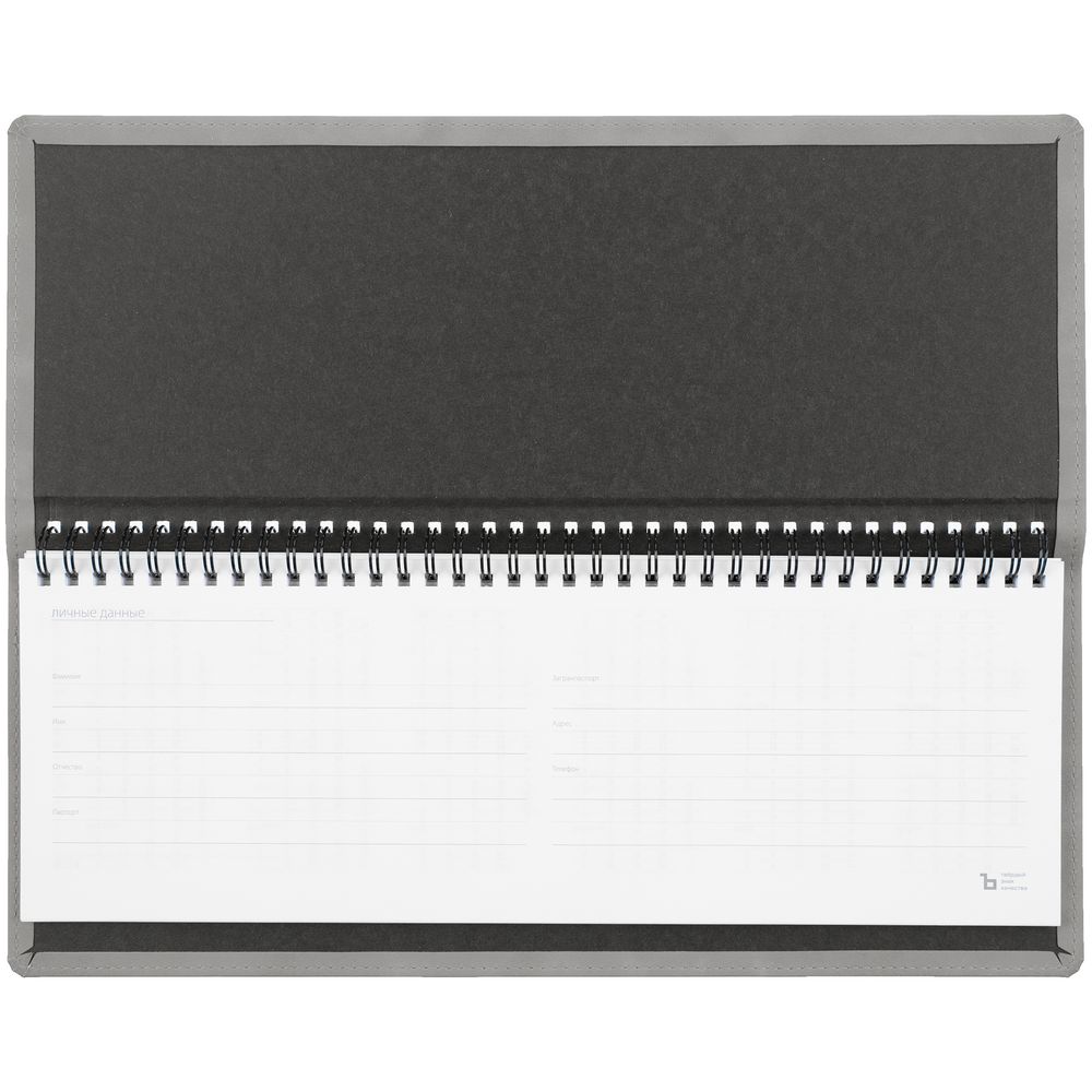 Планинг с твердой обложкой, выполнен из материала Nubuck Touch, серый СС.