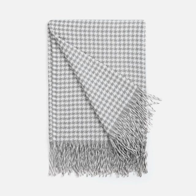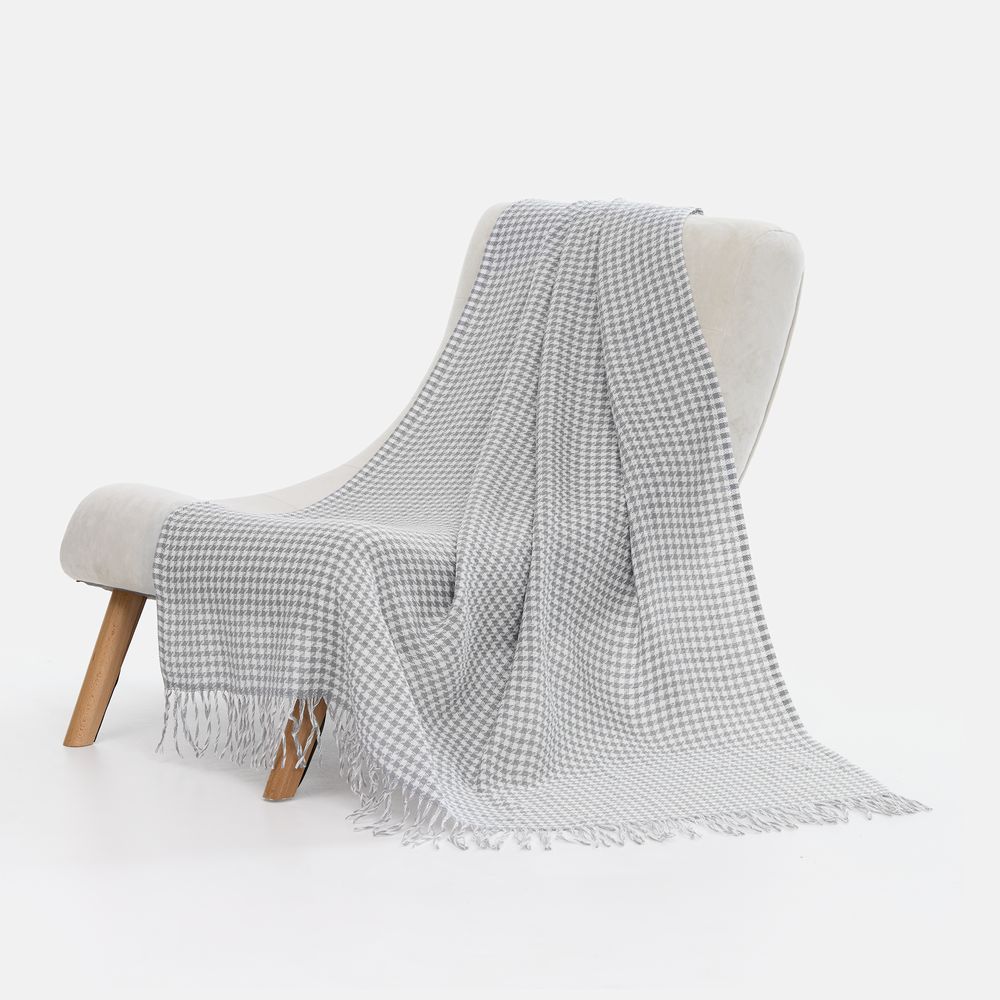 Графичный узор «гусиная лапка» (или «pied-de-poule») превращает изделие в изысканный интерьерный акцент, а бахрома добавляет ему элегантности и завершенности. Это воплощение безупречного вкуса и дань вневременной классике.