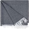 Классический рисунок «елочка» не слишком привлекает внимание, но в то же время добавляет изюминки. Смешанный состав пряжи продлевает срок службы и существенно облегчает уход за пледом.
