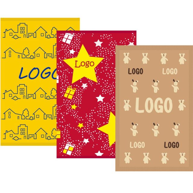 Плед с вывязанным логотипом и индивидуальным рисунком в фирменной цветовой гамме.