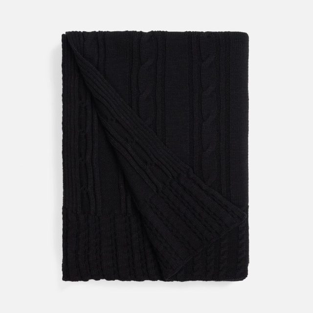 Тонкое переплетение вертикальных кос-жгутов создает благородный стиль, где простота линий встречается с изысканной рельефной текстурой. Плед из мягкого акрила сохраняет тепло, оставаясь удивительно легким и воздушным.