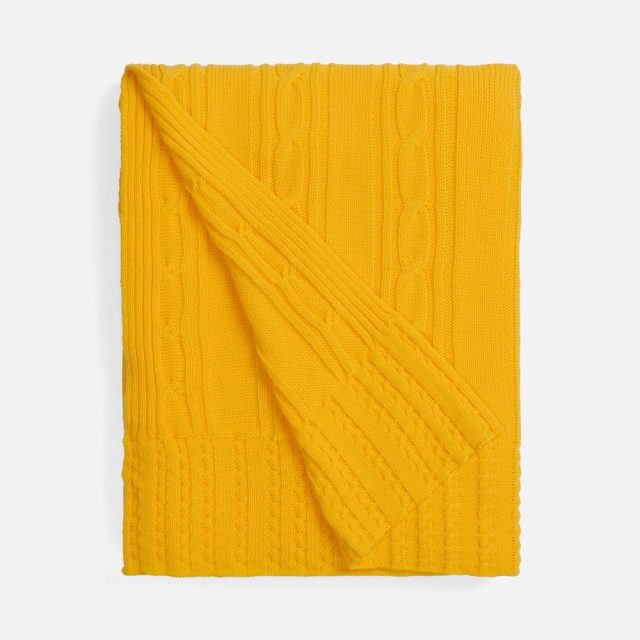Тонкое переплетение вертикальных кос-жгутов создает благородный стиль, где простота линий встречается с изысканной рельефной текстурой. Плед из мягкого акрила сохраняет тепло, оставаясь удивительно легким и воздушным.