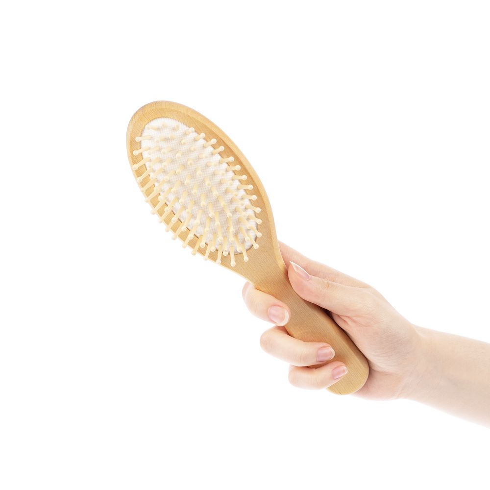 Массажная расческа Vihri из карельской березы с закругленными деревянными зубцами обеспечивает бережное расчесывание волос любой длины. Натуральный материал не дает жирным волосам засаливаться, а сухим — сечься и ломаться, нейтрализует статическое электричество, приглаживает чешуйки и усиливает естественный блеск.