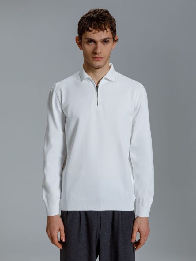 Модная рубашка поло из гладкого полотна идеально садится по фигуре. Металлическая молния на планке делает образ современным и лаконичным.