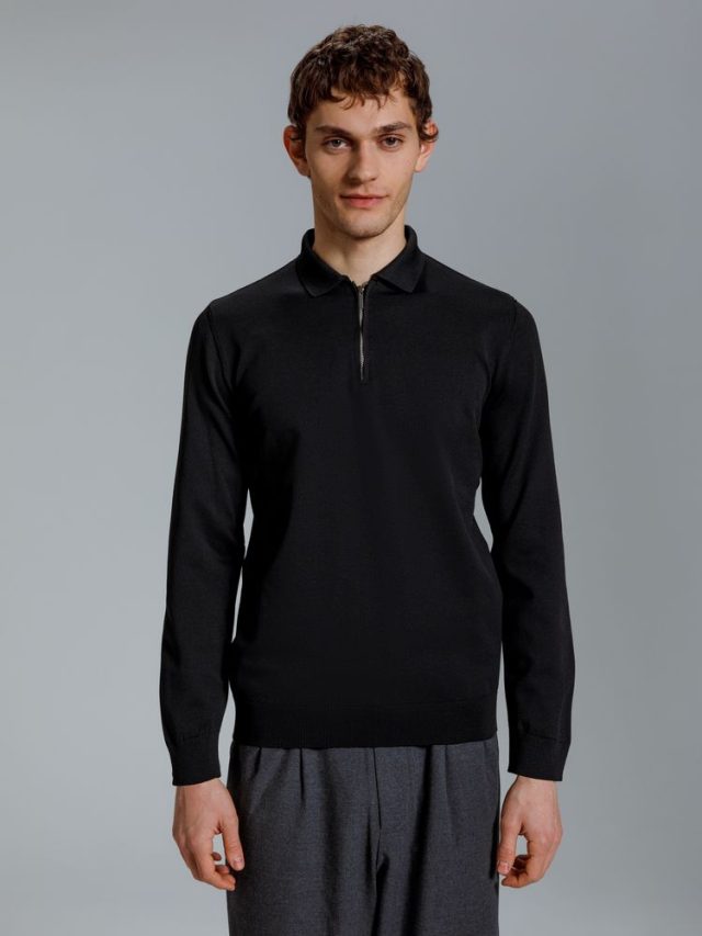 Рубашка поло мужская с длинным рукавом Terrazzo, черная