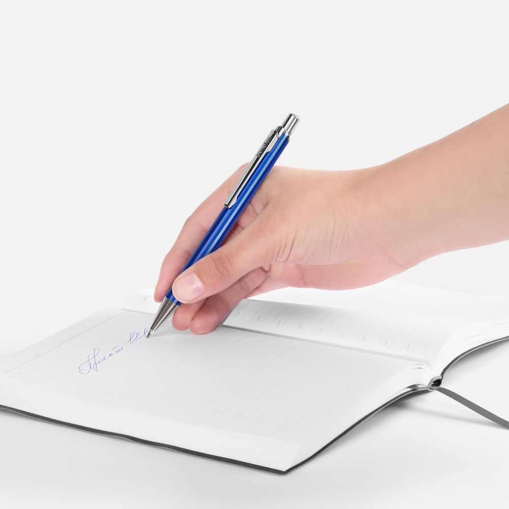 Шариковая ручка в лакированном корпусе с хромированными деталями.