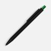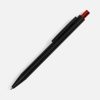 Ручка строгих форм в черном матовом корпусе с цветными деталями, которая точно может удивить, — гравировка на ней вскрывается цветом в тон кнопке.