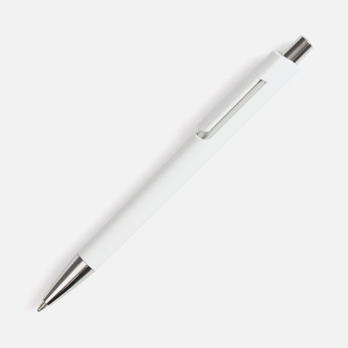 Шариковая ручка с цветным глянцевым корпусом и акцентными серебристыми деталями.