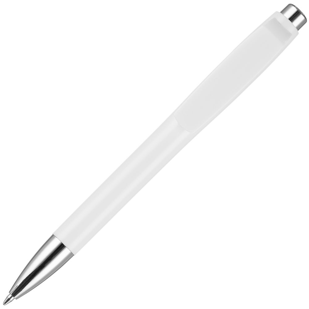 Пластиковая ручка с глянцевым корпусом и хромированными деталями. Большой клип идеален для нанесения логотипа компании.