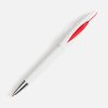 Шариковая ручка приятных округлых форм с белым глянцевым корпусом и цветовым акцентом.