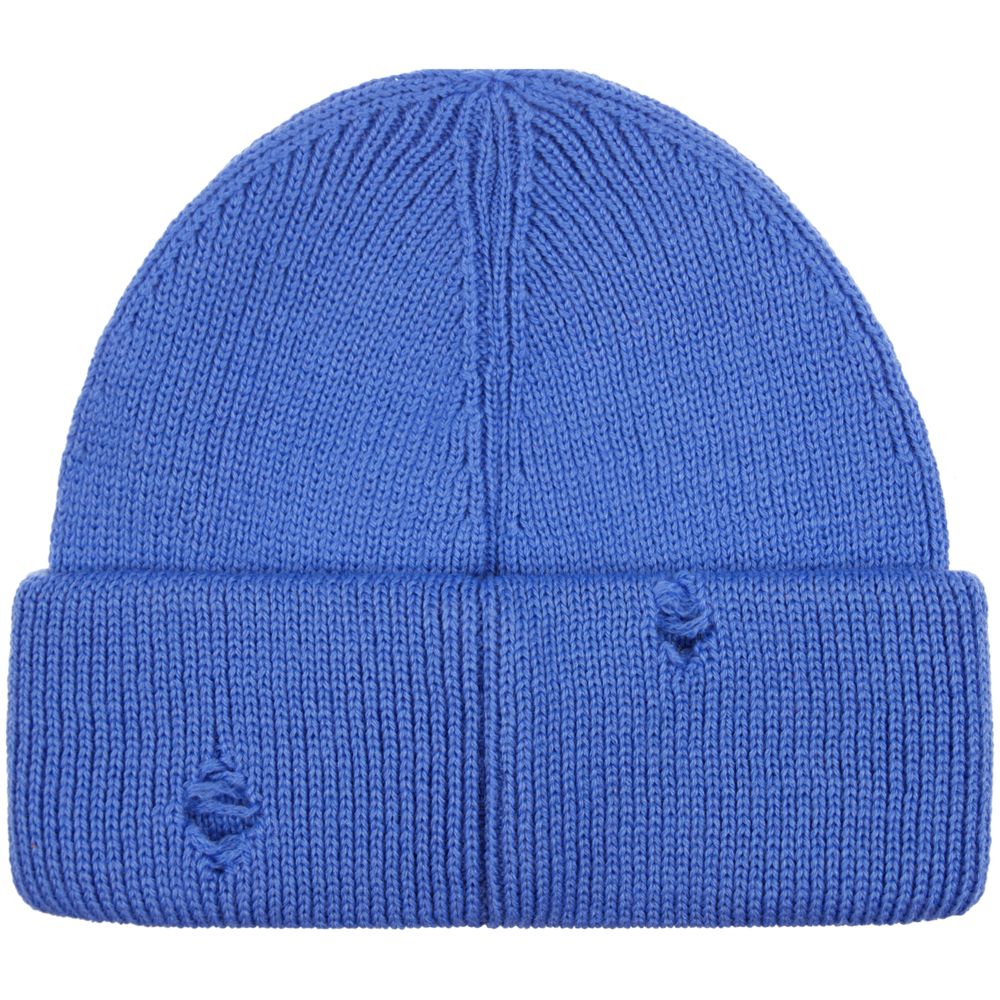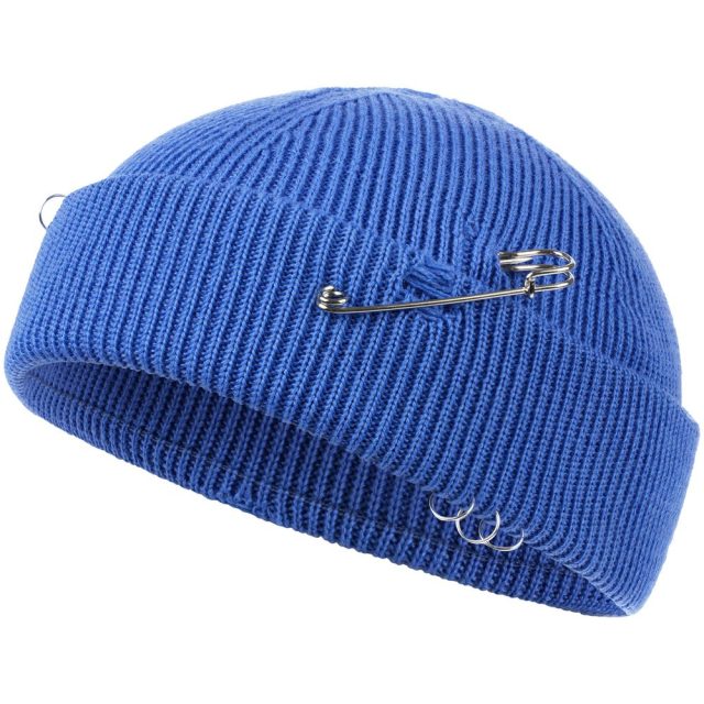 Однослойная шапка бини с рваным отворотом и металлическими аксессуарами для дерзких образов в любом возрасте. Яркий и запоминающийся акцент в стиле гранж.