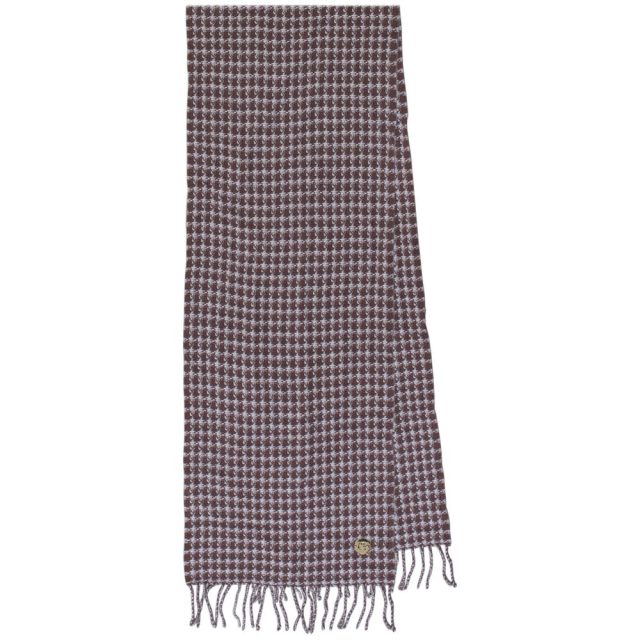 Шарф из высококачественной шерсти с бахромой и узором «гусиная лапка» украшен золотистой эмблемой бренда Cacharel.Поставляется в подарочной упаковке.