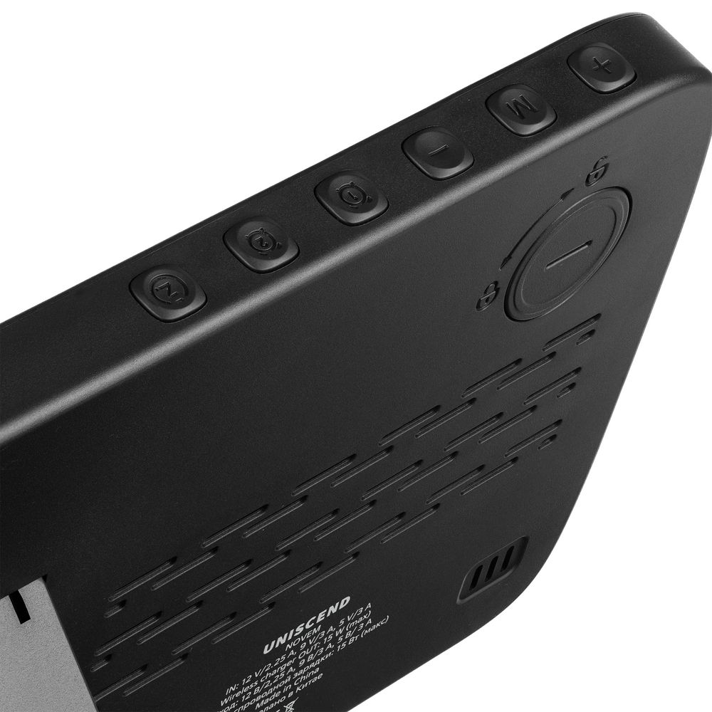 Novem — многофункциональное устройство, которое сочетает в себе функции беспроводной зарядки, настольных часов с будильником, электронного календаря и метеостанции, которая показывает значения температуры и влажности.