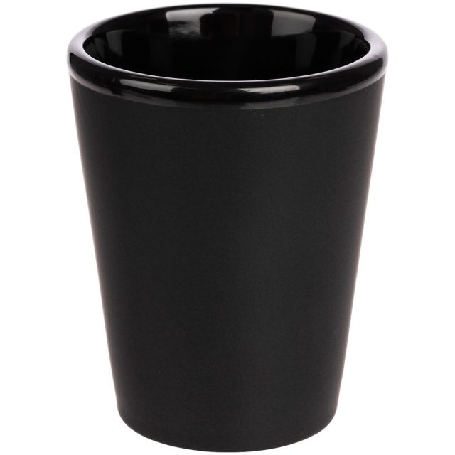 Керамическая стопка Schwarz Glanz привлекает внимание оригинальным дизайном: глянцевые внутренняя часть и ободок контрастируют с матовой поверхностью изделия.