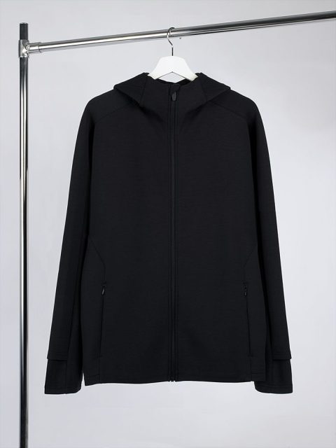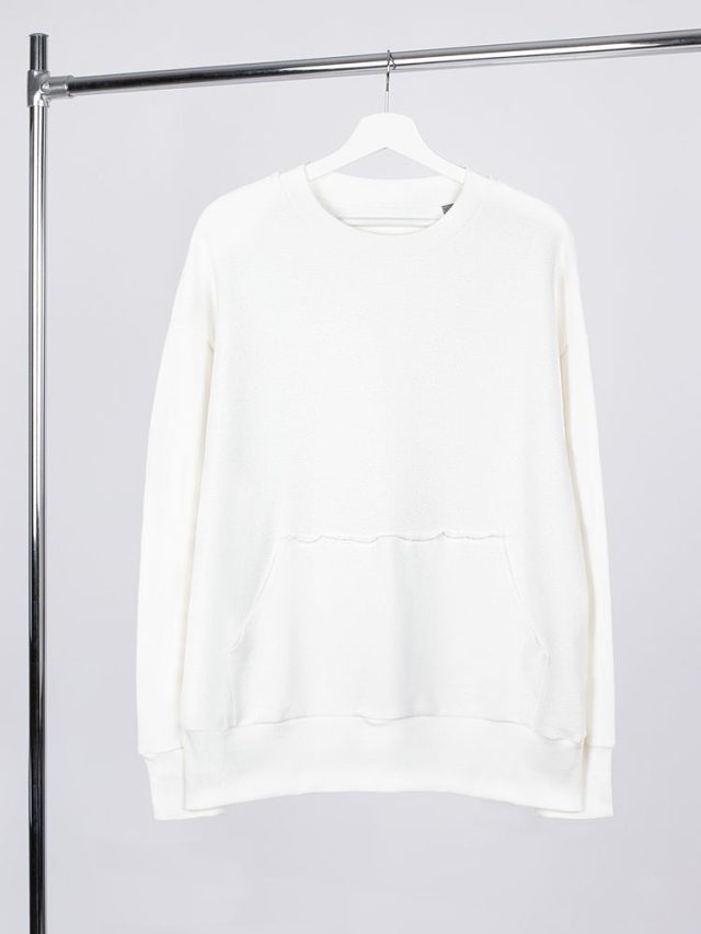 Благодаря особой конструкции, где часть деталей — перед и спинка — вывернута наизнанку, свитшот приобретает запоминающийся вид. Так внутренняя, обычно незаметная сторона материала превращается в лицевую: миниатюрные петельки бывшей изнанки становятся настоящим украшением толстовки, добавляя ей оригинальности и эффект невероятно приятной плюшевости.