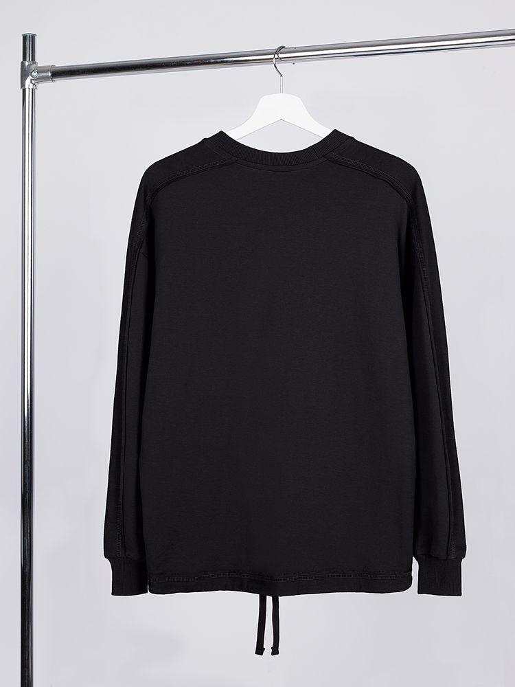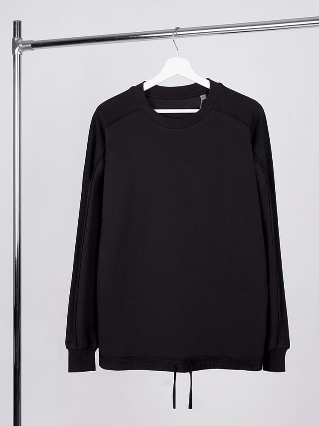 Свитшот унисекс оригинального пошива вдохнет новую жизнь в повседневный гардероб и добавит стильную нотку легкой небрежности в образ. Особая конструкция, где часть деталей — плечи и рукава — вывернута наизнанку, создает необычный притягательный эффект.