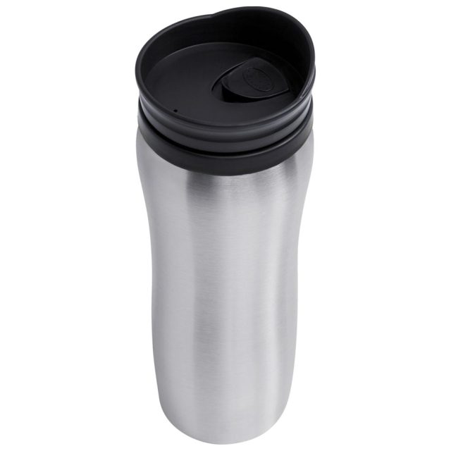 Двухслойная конструкция из пластика внутри и нержавеющей стали снаружи сохраняет напитки горячими в течение 1 часа, холодными — 2 часов.