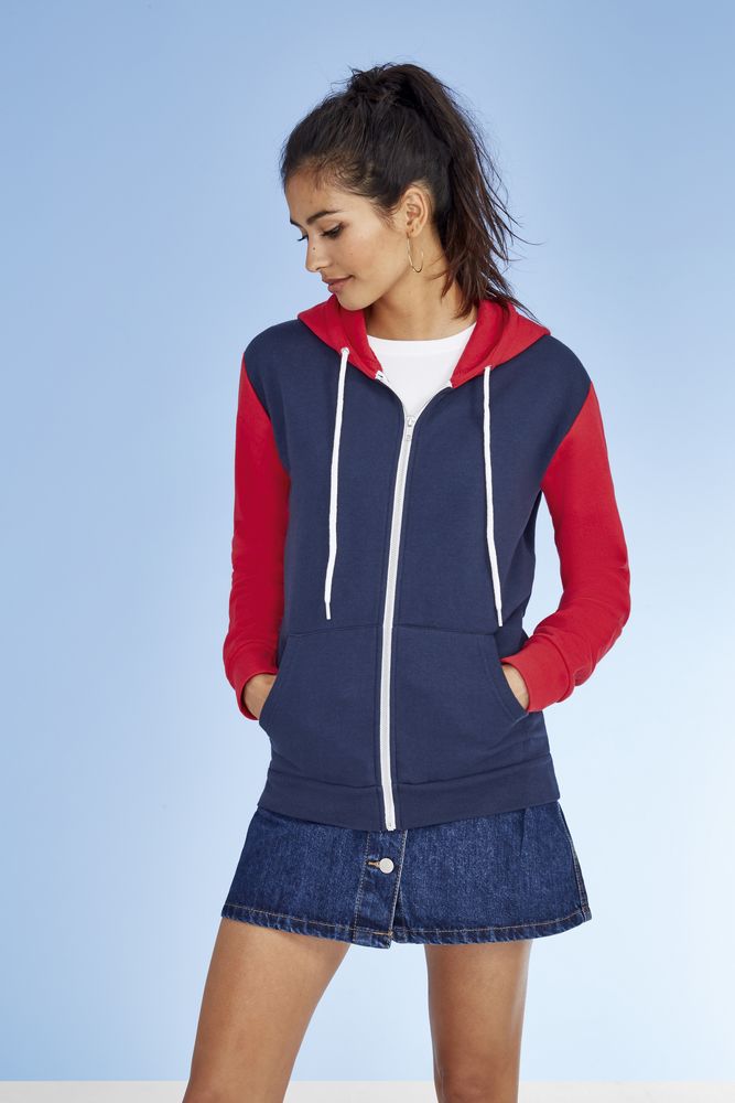 Вшивной рукав; 2 кармана «кенгуру», капюшон на подкладке с белым стягивающим контрастным шнурком и наконечниками в тон, облегающая модель.