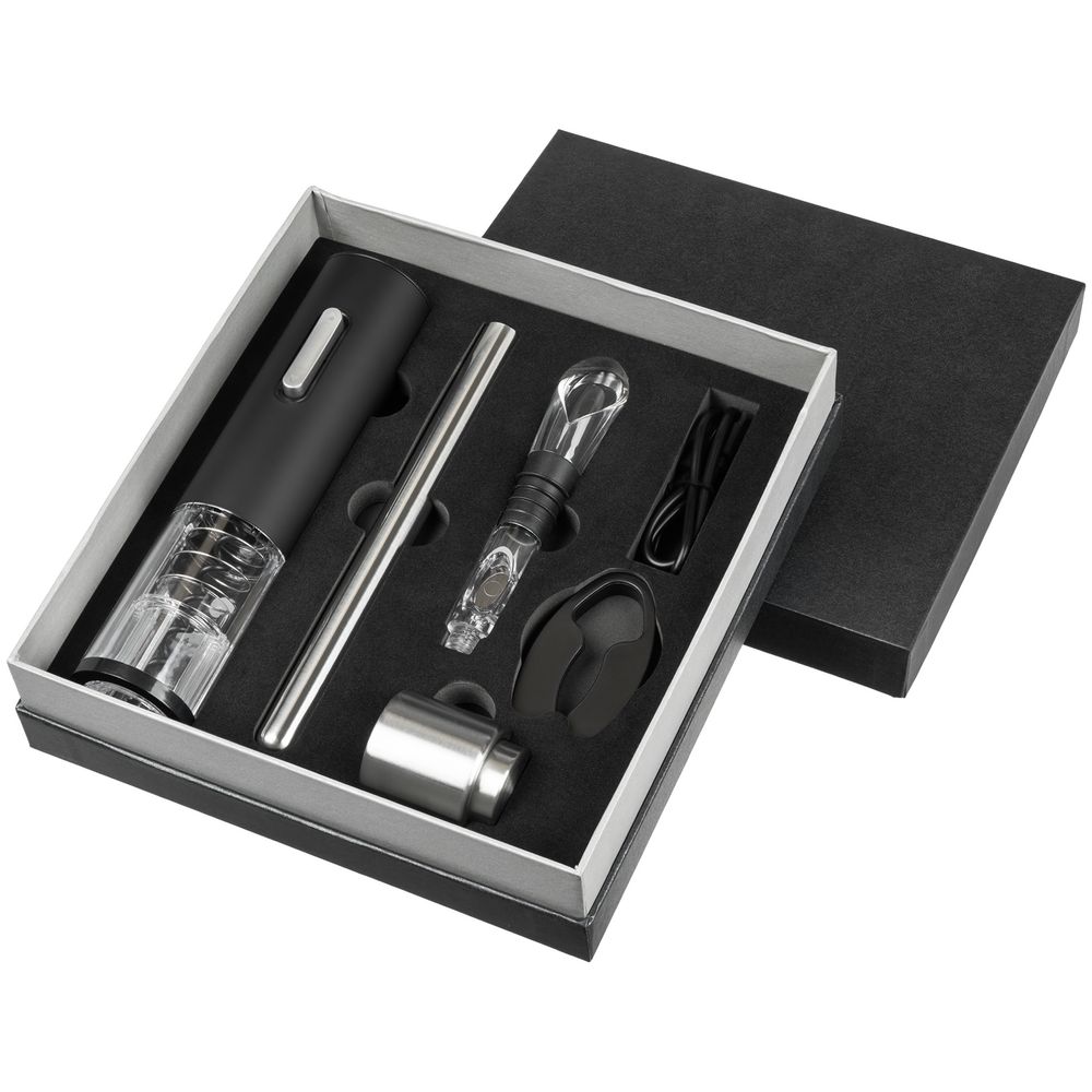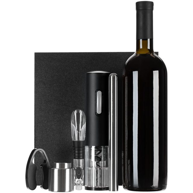 Набор Wine Diesel — настоящая находка для ценителей вин. Благодаря продуманному дизайну использование автоматического штопора практически не требует участия человека. Изящный чиллер поддерживает температуру напитка до часа, удобная разливочная воронка дополнительно аэрирует вино и не позволяет пролить его мимо бокала, а небольшая вакуумная пробка сохраняет вкусовые свойства напитка в течение нескольких дней.